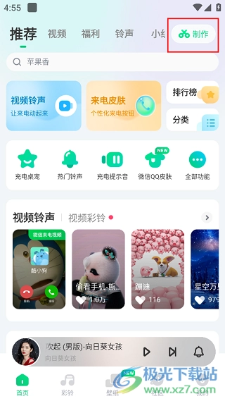 1、打开酷狗铃声的主界面,这里有丰富的铃声资源可供选择,接着点击界面右上角的“制作”按钮。