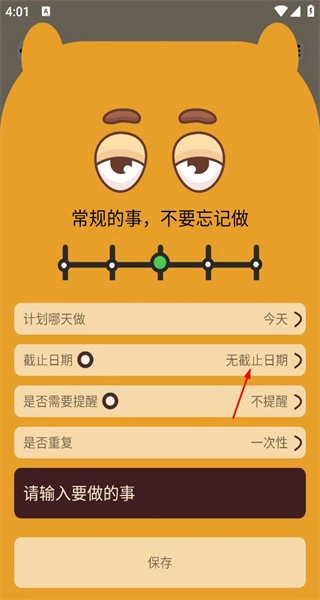 3、进入待办添加界面后,能看到“计划哪天做”“截止日期”等设置选项,接着点击截止日期选项。