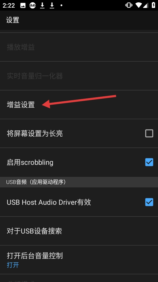 3、进入设置界面后,点击【增益设置】选项,此时会弹出增益设置的弹窗。