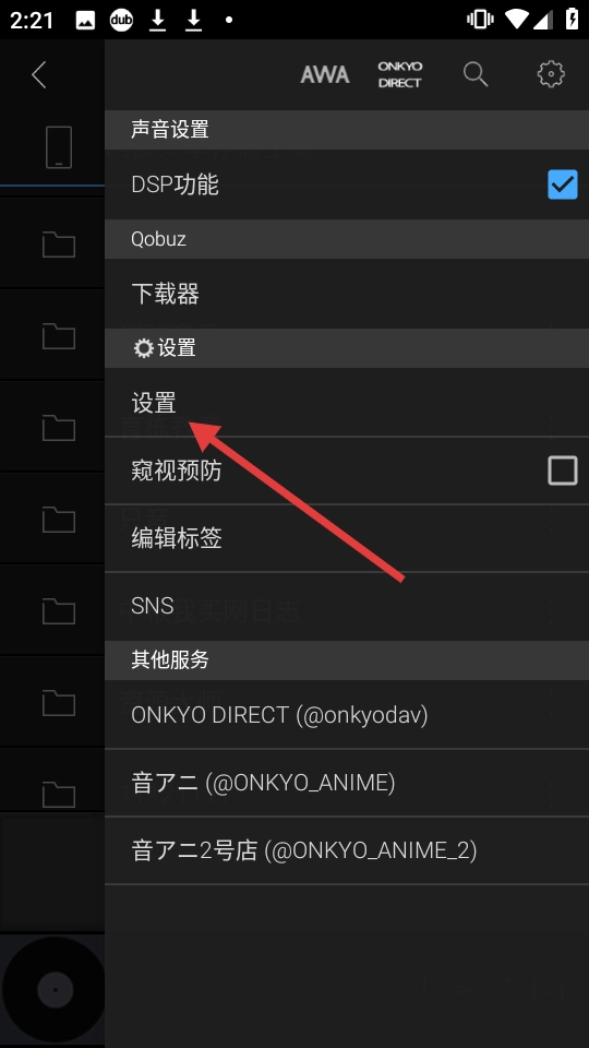 2、在展开的菜单里,点击【设置】这一选项,即可进入设置界面。