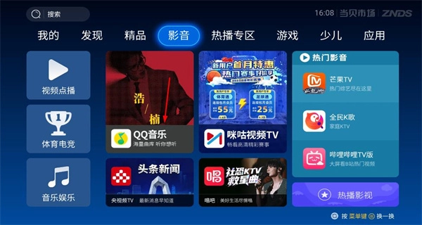 2、切换到影音分类页面,能看到QQ音乐这类应用,接着浏览这些和影音相关的内容资源。