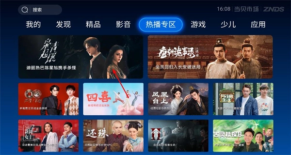 3、切换到热播专区的分类页面后,能看到多部涵盖不同题材的影视内容,接着浏览这些热播的影视相关资源。