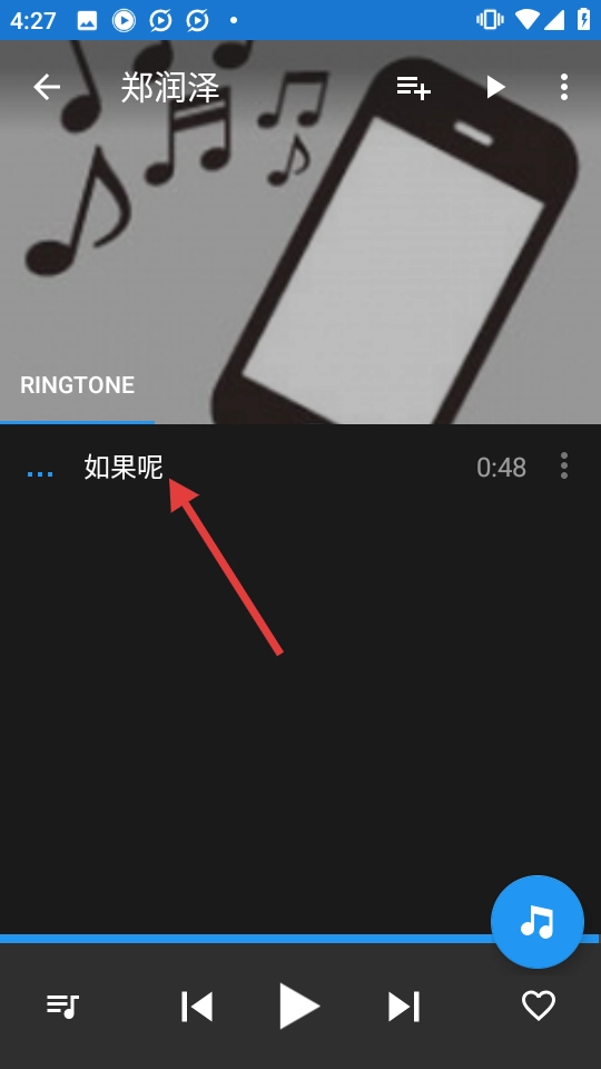 3、在列表中点击【如果呢】歌曲,进入播放界面。