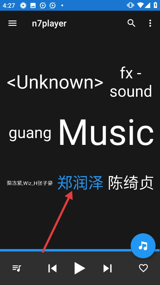 1、在n7player应用中,点击【郑润泽】进入其音乐页面。