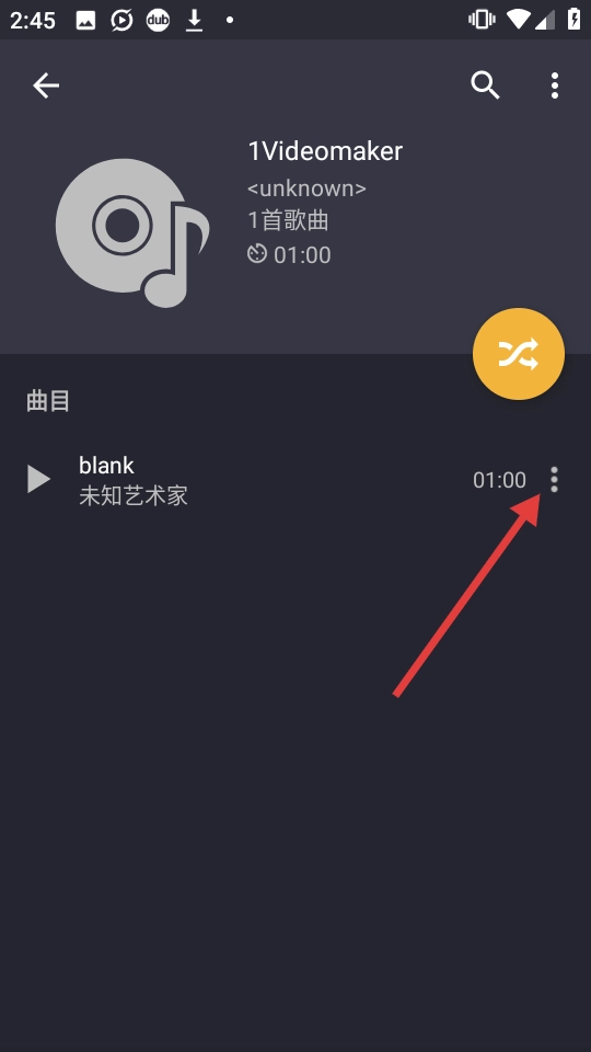 2、在专辑详情页面,点击曲目右侧的【三点】图标,展开操作菜单。