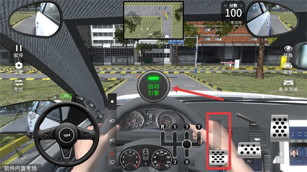 1、我们先向下滑动【离合】,接着点击【启动引擎】,以此开启驾考模拟的驾驶流程。