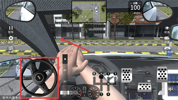 4、当遇到需要转向的项目时,转动【方向盘】,就能精准把控车辆的转向,轻松通过直角转弯这类考试项目了。