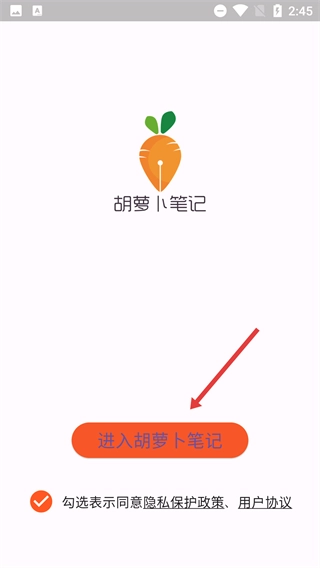 2、勾选“同意隐私保护政策、用户协议”后,点击【进入胡萝卜笔记】按钮,即可进入应用的主界面。