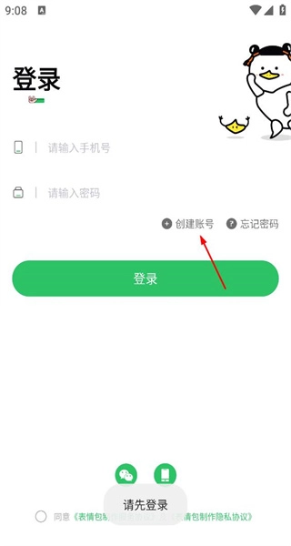 3、点击“请登录”进入登录页面后,既可以输入手机号与密码进行登录,也能够点击“创建账号”按钮进入注册页面。