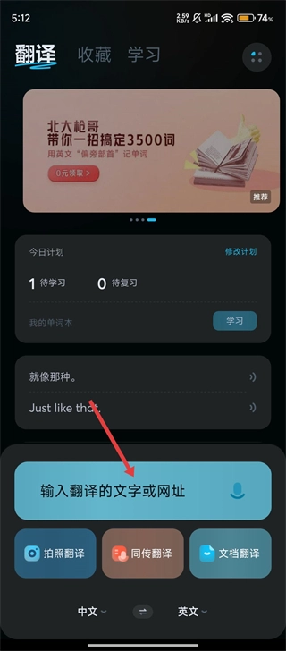 1、我们点击【输入框】,准备输入需要翻译的内容,以此开启翻译收藏的流程。