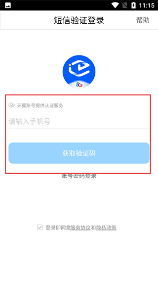 1、在【短信验证登录】页,先在【请输入手机号】框填写号码,再点击【获取验证码】,同时需确认已勾选服务协议。