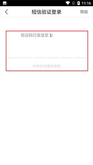 3、获取验证码后,页面会显示【验证码已发送至】,在输入框填写收到的验证码,若超时可等倒计时结束后重新获取。