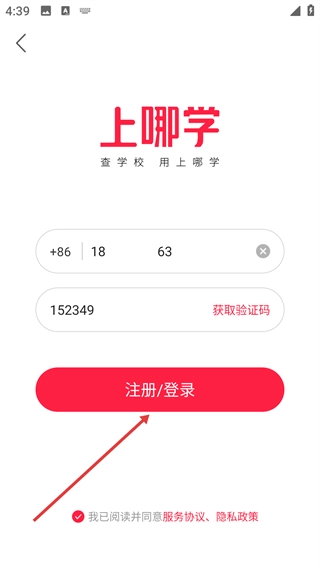 2、填写手机号与收到的验证码后,确认已勾选相关协议,点击【注册/登录】按钮,即可完成账号的注册或登录流程。