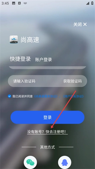 1、在“我的”页面点击【未登录】区域,会进入尚高速的登录界面,此时可以选择登录或者注册的方式。