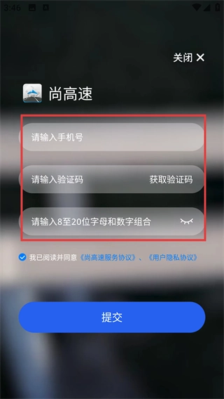 4、在确认注册信息无误且勾选相关协议后,点击【提交】按钮,即可完成账号注册流程,从而获得尚高速平台的使用权限。