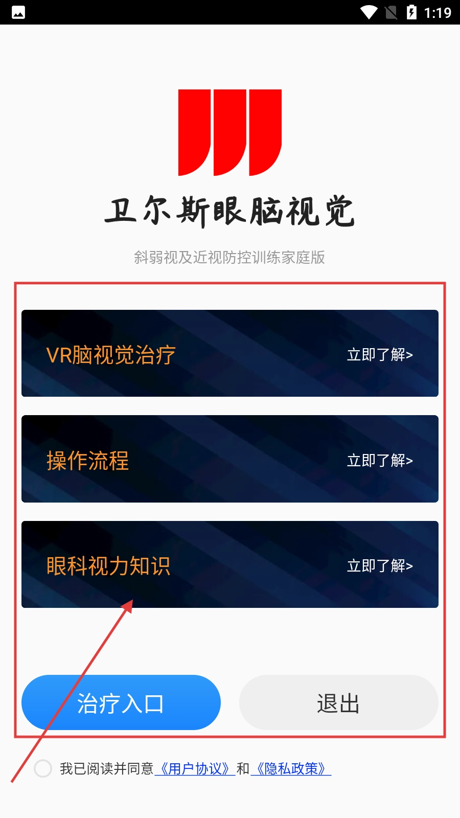 3、完成注册后进入功能选择界面,点击【眼科视力知识】选项,即可进入视力知识列表页面。