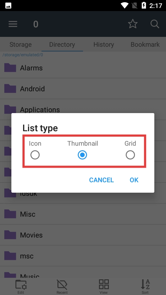 4、在Listtype弹窗中,选择Icon、Thumbnail或Grid视图类型后,点击【OK】确认设置。