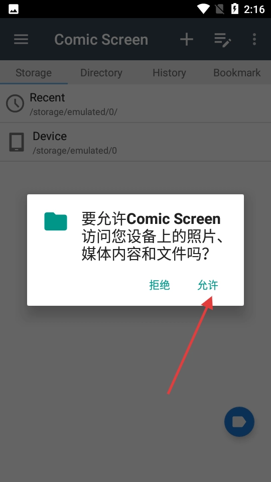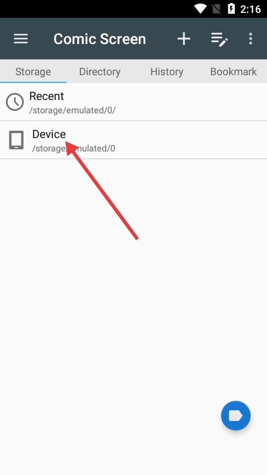 1、在ComicScreen应用的Storage页面,点击【Device】选项。