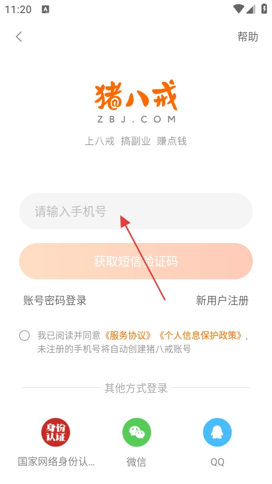 3、在登录界面输入手机号码,获取验证码后填入以完成登录操作。