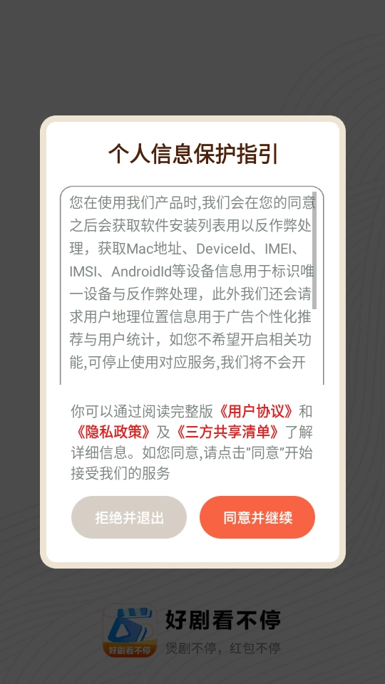 2、安装完成后,启动软件,并阅读并同意隐私协议。