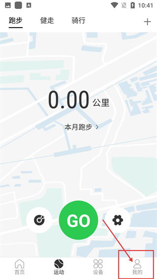 2、应用内的【运动】页面能够记录跑步、健走等运动情况,点击底部导航栏中的【我的】选项,即可进入个人中心页面,对个人信息和运动数据进行管理。