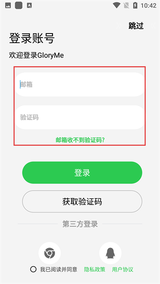 4、登录页面支持邮箱验证码登录方式,操作流程为:先填写【邮箱】,点击【获取验证码】按钮并输入收到的验证码,最后勾选相关协议,即可完成登录。