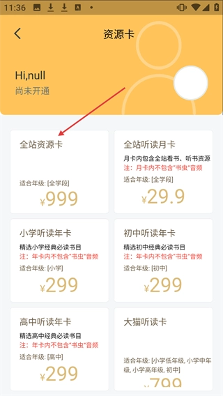 2、在资源卡页面选择【全站资源卡】,进入其详情页。