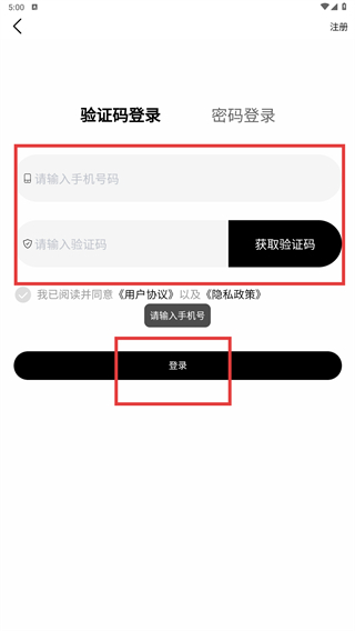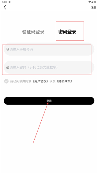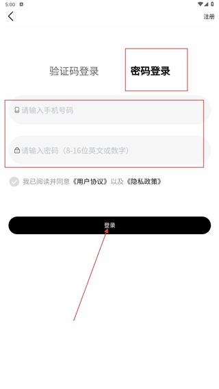 4、也可以选择【密码登录】的方式,填写手机号和密码后,点击【登录按钮】就能完成登录。
