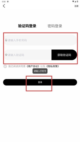 3、选择【验证码登录】方式,在对应的输入框中填写手机号,点击【获取验证码】按钮获取验证码并填入,随后点击【登录】按钮即可完成登录操作。