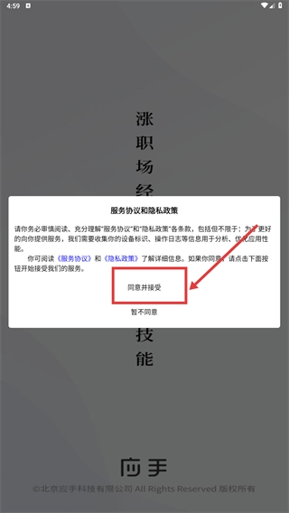 阅读《服务协议》与《隐私政策》后,点击【同意并接受】按钮,即可进入应用的个人中心界面。