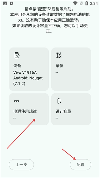 3、在该页面中,应用会读取设备数据以了解电池性能,点击【配置】按钮并稍作等待即可完成读取操作,若数据存在误差可手动进行修正。