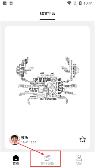 1、进入【3D文字云】首页,浏览展示的模板内容后,点击底部导航栏中的【制作词云】选项,即可进入对应的词云制作页面。