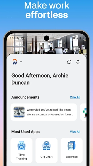 Workday是一款高效的人力资源管理工具,助力企业完成员工全流程管理,涵盖考勤、工作考核、审批、薪资发放等丰富功能,还提供实用办公工具,支持线上办公与团队协作,能便捷生成统计表格,方便总结员工个人情况,适用于各类企业。