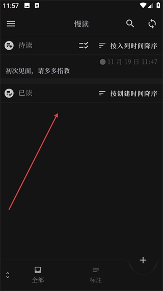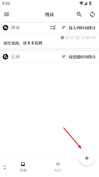1、打开慢读后,点击右下角的【+】;