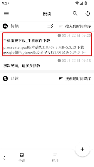 3、保存成功后,保存好的网页就会出现在【待读】列表中,点击即可开始阅读。