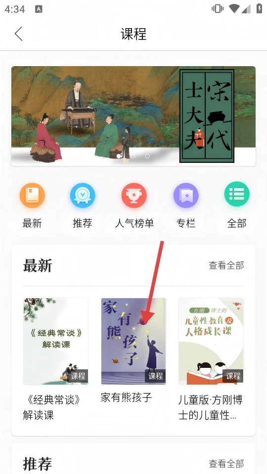 2、在课程推荐页面点击【家有熊孩子】课程卡片,可进入该课程详情页。