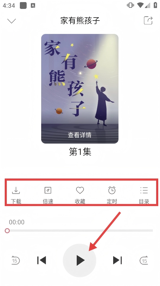 4、在课程播放界面,可借助【】【倍速】【收藏】【定时】【目录】等功能按钮操作,点击播放键即可收听课程内容。