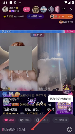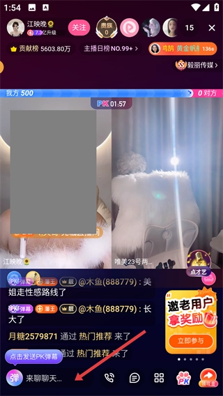 3、在直播间底部找到【来聊聊天】输入框,点击后就能输入文字,和主播互动交流啦。