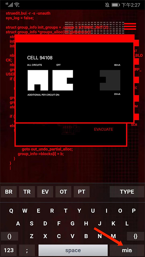 3、精准营造黑客操作氛围,用户只需点击右下角的min按钮就能隐藏键盘,若想恢复显示,再次点击加号即可。