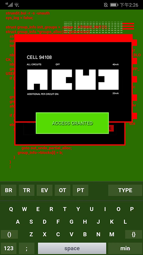 2、在程序运行期间,随意敲击键盘会在界面上生成一串串排列整齐的代码。当敲击到一定程度后,按下Enter键或Alt键,就会弹出“拒绝访问”或“允许访问”的提示窗口,这意味着本次操作宣告结束。