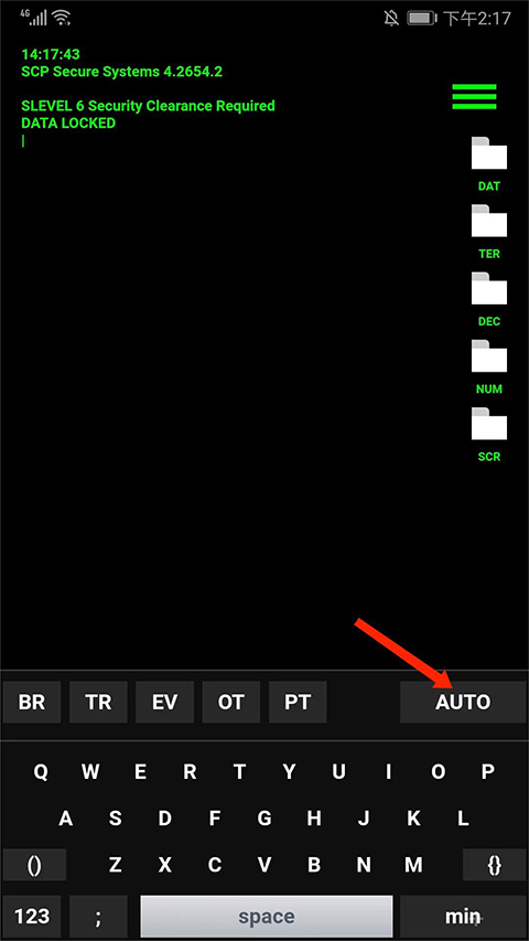 2、进入代码编辑界面后,在键盘上选取任意字母,接着点击【AUTO】按钮,系统便会自动启动并滚动代码。