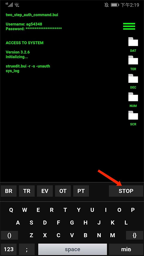 3、若需要暂停代码运行,点击界面上的【STOP】按钮就能完成暂停操作。