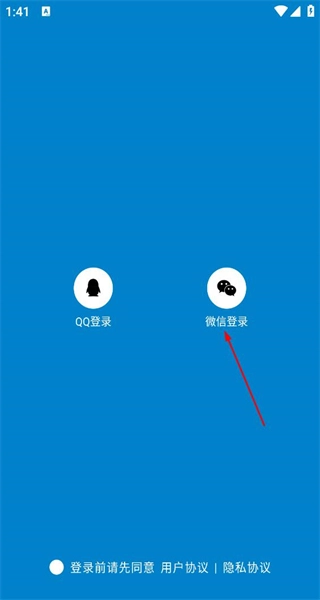 3、进入登录方式选择界面后,会看到QQ登录和微信登录两个选项,选择相应的方式即可准备完成软件的登录步骤。