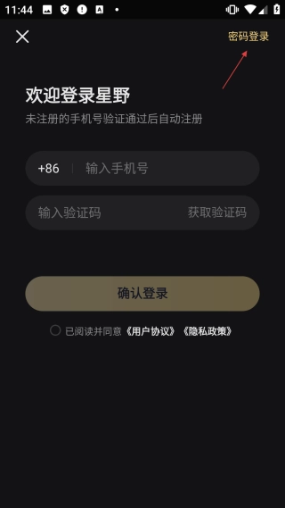2、进入登录界面后,点击【密码登录】选项,即可切换至密码登录的界面。