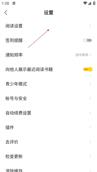 在【我的】页面中,点击【设置】选项,进入设置界面后,即可对阅读、账号等多个方面进行设置。