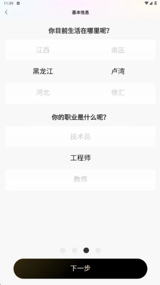 4、在基本信息板块,需要确定你生活的地方和职业,便于平台平台推荐适合对象。
