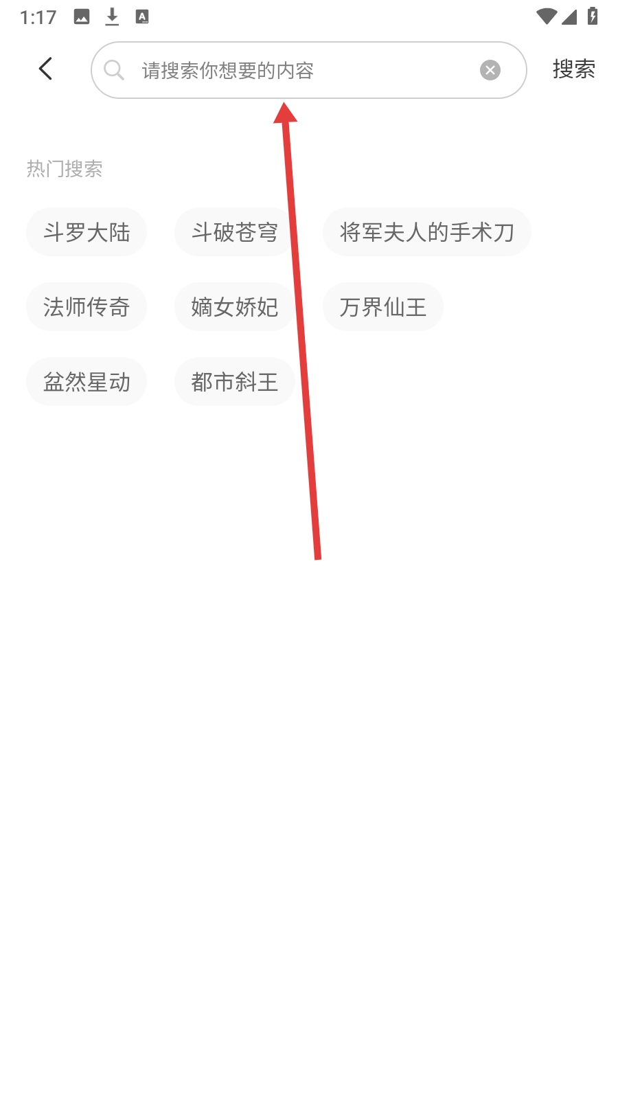 1、在团团漫画首页点击左上角的【搜索栏】,即可进入搜索输入界面。