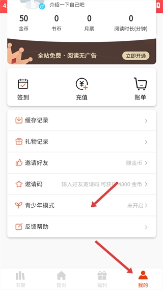 1、进入“我的”页面后,找到并点击“青少年模式”选项。