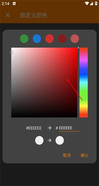 4、进入颜色选择界面后,浏览调色板与各项颜色选项,选好合适的颜色,点击确认按钮即可完成该颜色的设置。