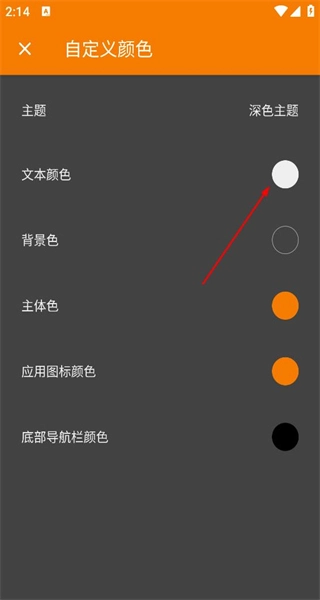 3、进入自定义颜色页面后,会看到文本颜色等多项颜色设置选项,接着点击文本颜色,即可进入对应的颜色选择界面。